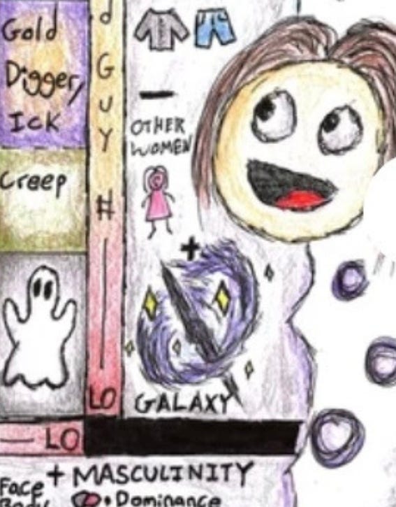 The chart also introduces the concept of the 'Galaxy', encompassing the diverse and individual preferences of women in evaluating men. This could include attributes like compatibility with children, shared hobbies, or other specific qualities that uniquely appeal to different women. These preferences play a subtle but significant role in how a woman perceives and values a potential partner.