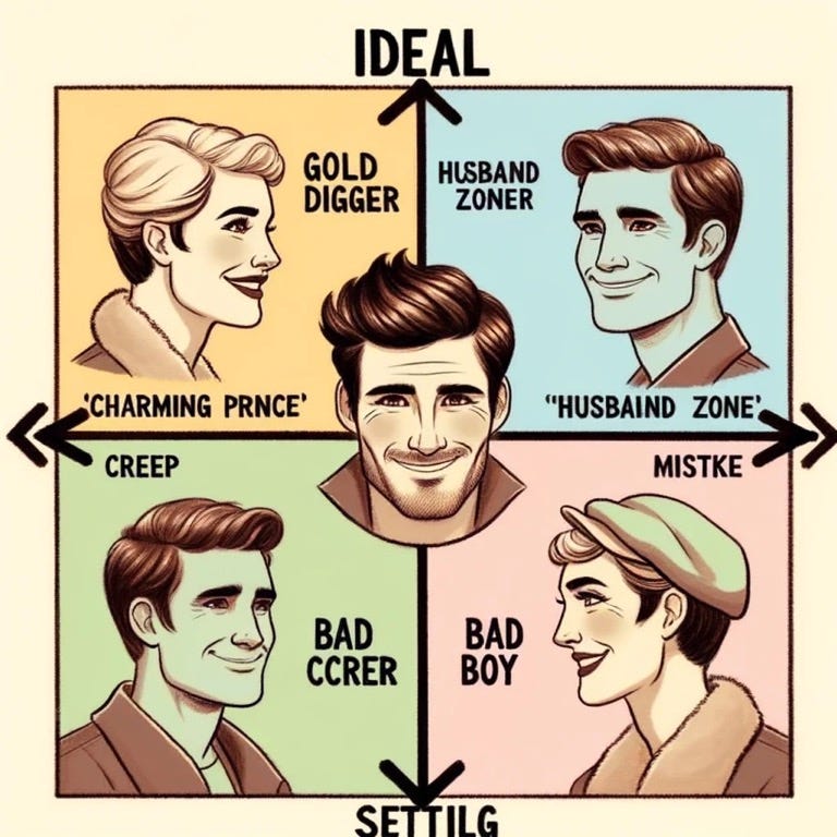 The chart of modern dating reveals a striking truth: being labeled as a 'medium bad boy' without any 'good guy' traits can be detrimental in the eyes of women. This categorization often leads to being seen as a regrettable choice, akin to a decision made in a moment of impaired judgment. This is especially true for men who lack general appeal or niceness, as it positions them in a zone of fleeting attraction without the substance for lasting connection.