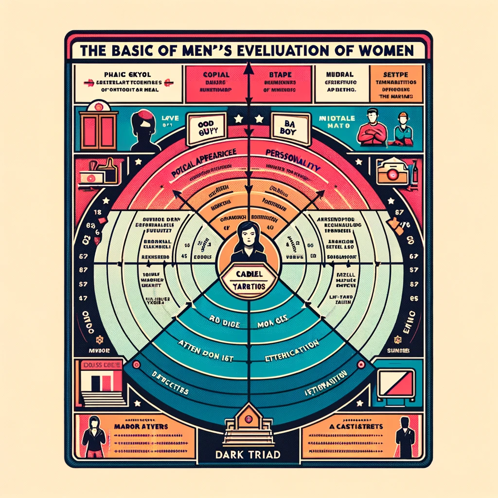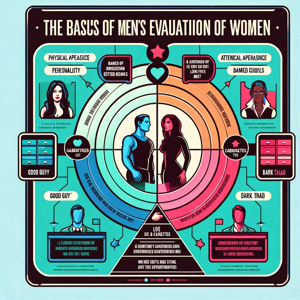 In contrast, women's assessment of men involves a dual criteria system, balancing 'good guy' qualities with 'bad boy' attributes. This dichotomy creates complexity in understanding women's preferences, as they appear to seek a blend of both.